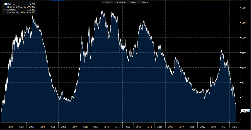 (10yrs-2yrs), que costuma preceder recessões, continua a chamar a atenção dos